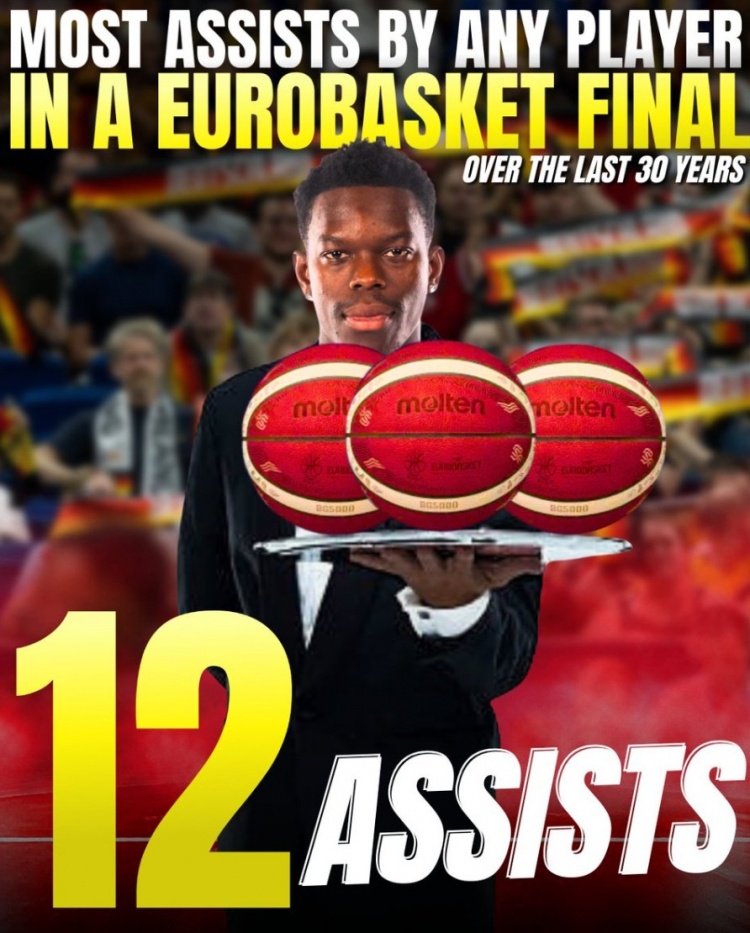 據(jù)統(tǒng)計(jì),施羅德送出12助攻,創(chuàng)近30年來(lái)歐錦賽決賽新紀(jì)錄。