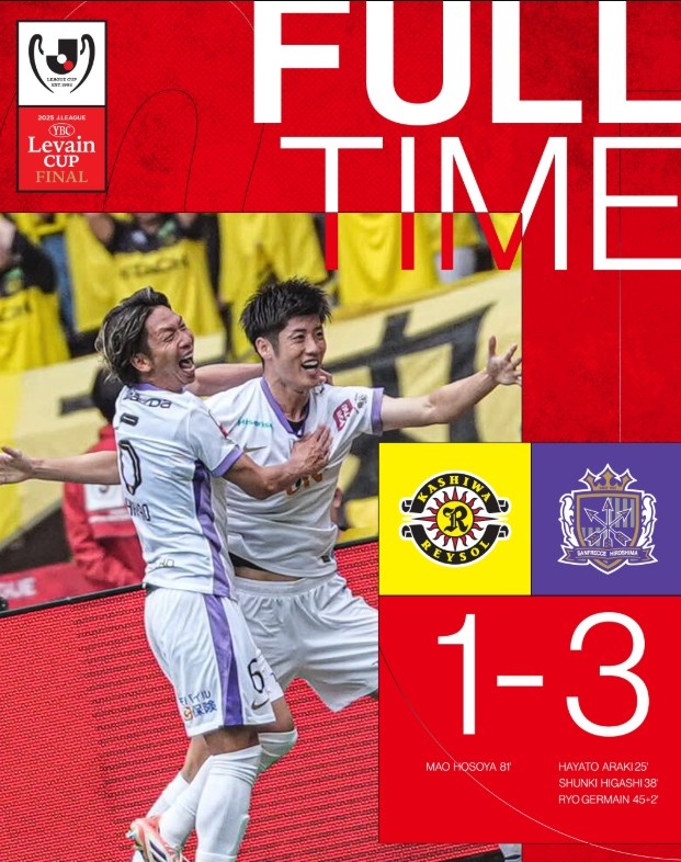 2025年J聯(lián)賽杯決賽今天在東京國(guó)立競(jìng)技場(chǎng)進(jìn)行,廣島三箭vs柏太陽(yáng)神,廣島三箭依靠荒木隼人、東俊希以及杰梅恩-良的進(jìn)球3-1戰(zhàn)勝柏太陽(yáng)神奪冠,細(xì)谷真大為柏太陽(yáng)神進(jìn)球。