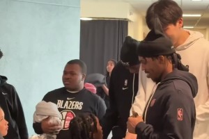 很受喜愛啊楊瀚森參與開拓者社區(qū)活動,與小球迷握手互動~