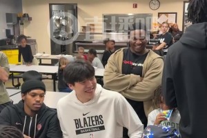 完全融入啦~楊瀚森參加開拓者社區(qū)活動,笑得很開心啊