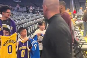 啊這!威少給小球迷簽了雷霆和火箭球衣,略過了湖人球衣