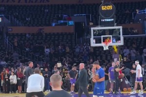 一旁斯呆芬都看呆了艾頓賽前熱身 竟然用端尿盆投半場(chǎng)三分…