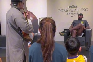 詹姆斯中國(guó)行 球迷現(xiàn)場(chǎng)演唱為詹創(chuàng)作的rap 老詹主動(dòng)握手感謝