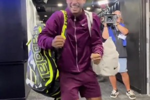美網(wǎng)半決賽后,阿卡與巴特勒擁抱,看起來像個小卡拉米
