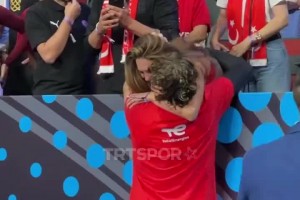 今天帶傷出戰(zhàn)!此前擊敗波蘭后 奧斯曼和看臺上的女友擁抱~