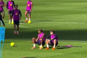 亞馬爾和費(fèi)爾明坐在球上探討未來,一旁的巴爾德是真調(diào)皮~