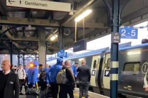 曼聯(lián)全隊(duì)乘坐火車前往倫敦戰(zhàn)熱刺,怎么穿一身藍(lán)