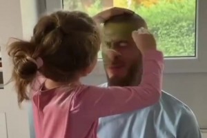 德赫亞女兒為老爹畫了個美美的綠綠妝~是真寵女兒呀~