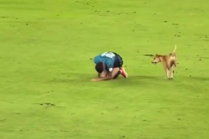 狗狗進場模仿球員受傷倒地…傷害性不大,侮辱性極強啊