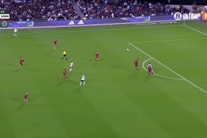 梅西插上時(shí)遭到多名球員包圍,一腳爆射被撲出后再傳被解圍