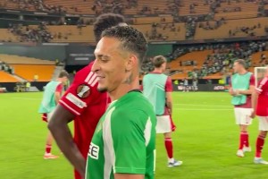 圓神傳射+絕平!比賽結(jié)束時,安東尼與諾丁漢森林球員擁抱寒暄
